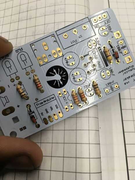 Encontrar los 2 diodos que es negro, rojo, gris, andred. Doblar alambres los 2 diodos en forma de u y colocarlos en la zona del PCB que tiene un triángulo con una línea horizontal a través de ella y una línea vertical junto a la punta del triángulo. Hacen para comprobar la polaridad. La raya negra sobre el diodo indica que lado es negativo mientras que el color rojo indica que es positivo. Soldar los diodos en la placa y cuando termines usa un cortador de alambre para cortar los cables en exceso de los diodos. Doble los cables de las resistencias en el kit en forma de u. Coloque el resistor de valor correcto en los derecha ohmios y la unidad de medida de ohmios es R, R7, K2. Coloque las resistencias oro, oro, negro, marrón en la zona que se señala con 1 R. Coloque el resistor de oro, marrón, rojo, rojo en la zona con 220R en él. Coloque las resistencias oro, rojas, rojas, marrón en el área con 1 K 2 en él. Coloque el resistor de oro, oro, púrpura, amarillo en la zona con 4 R 7 en él. Soldar las resistencias en la placa a continuación cortar el cable sobrante en la parte posterior del PCB.