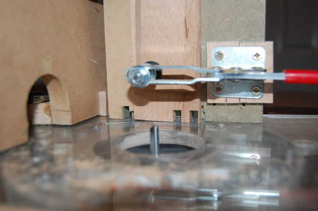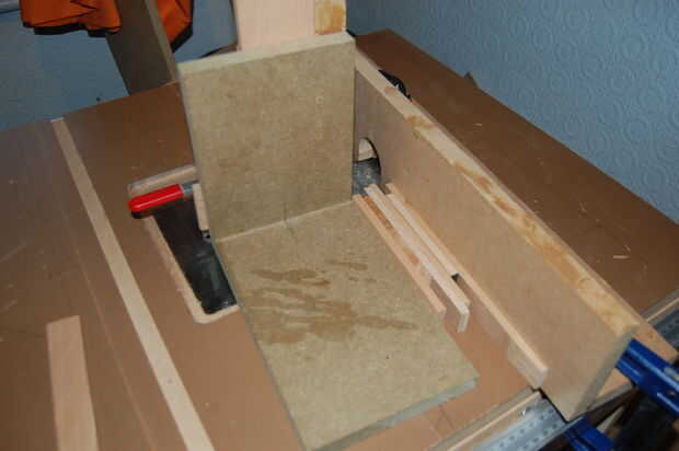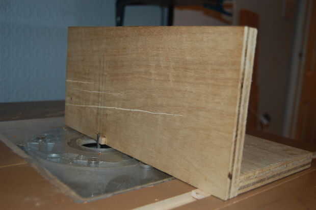 La plantilla de la ranura de inglete consiste en hacer una forma de L de 90 grados del chapeado. Fijo que junto con las galletas juntas ya que son super simples y rápidos. Ya que necesitaba una ranura de inglete pasar una ranura en la parte superior de mi mesa de router (que es el hogar hecho y parte de mi sierra de mesa), asegurándose que es paralela a las ranuras de inglete Sierra de mesa, esto puede ser útil para otros posicionadores etc.. Una vez la forma de L uso de que la Sierra de mesa valla a hacer un pequeño hueco en la plantilla con el router bits, este contará con un trozo de madera del mismo tamaño que el diámetro de la broca de fresadora. Una vez que ha hecho usted necesita ajustar la plantilla a la ranura de inglete. La plantilla tiene que compensarse desde el primer agujero por dos veces el diámetro de la broca de fresadora, arrancaron un pedazo de madera de unos 14mm (mi granito de arena fue de 7mm) y un plano y algunos calibradores a vernier se usa para obtener el ancho preciso. Esto entonces puede ser usado contra la guía de Sierra de mesa y las plantillas fijadas el el corredor de la ranura de inglete. Para hacer esto rasgar un pedazo de madera del mismo ancho y profundidad de la ranura de inglete. Coloque el corredor de madera en un par de arandelas de por lo que son simplemente orgullosos de la mesa, pegar la parte superior de ellos y coloque la plantilla de L en la parte superior del corredor, abrazadera y esperar a pegamento fijar. Se encuentra una vez más y seguro con tornillos coutersunk. Usando lo más fácil que hacer o explicar cómo hacerlo! A tope hasta la madera para la articulación con el pequeño trozo de madera en la plantilla, fijarlo y pasar por el router. Esta ranura puede entonces caber sobre la madera pequeña y pasar por el router nuevo y sólo llevar a cabo. Si esto es mucho para leer hay plantillas similares en todo el internet y también algunos tienen videos.