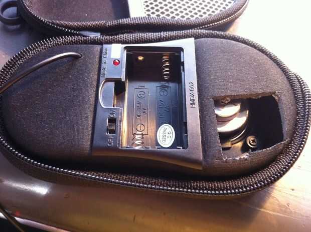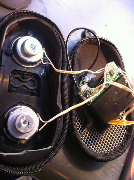 Con mis altavoces, la compañía no hacer la electrónica tan accesible como podrían ser. Había un centímetro de pegado en espuma entre yo y mis altavoces. Así había forjado mi entrada con mi amiguita la hoja de afeitar. Después de recortar la espuma, encontré que había muy poco por debajo; sólo el caso de la batería, dos altavoces y un circuito muy pequeño. Después de tirar estos artículos fuera de su cubierta, comparaba uno de los oradores a pierna disimulada Blasters. Desafortunadamente, los altavoces eran a manera de grande y no funcionaba. Después de cavar a través de mi electrónica y cubo de juguete, he encontrado a dos altavoces de juguete ajuste perfectamente a la pierna. Después de enganchar a éstos hasta la placa de circuito, encontré sonaban grandes!