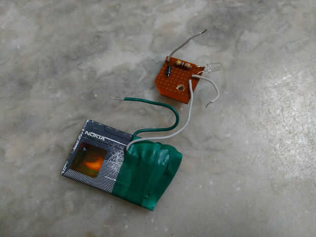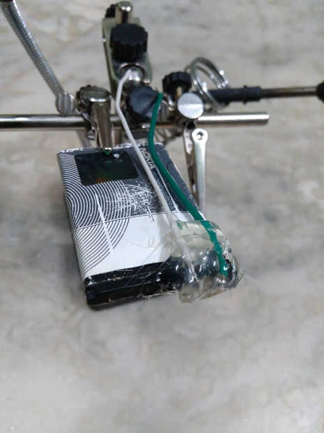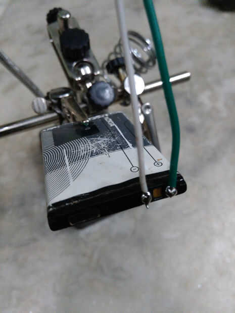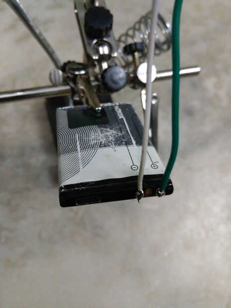 después de soldar dos cables a la batería (+) y (-) terminales... para propósito de seguridad encolarla y cubra con cinta aislante...
