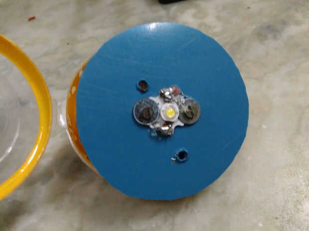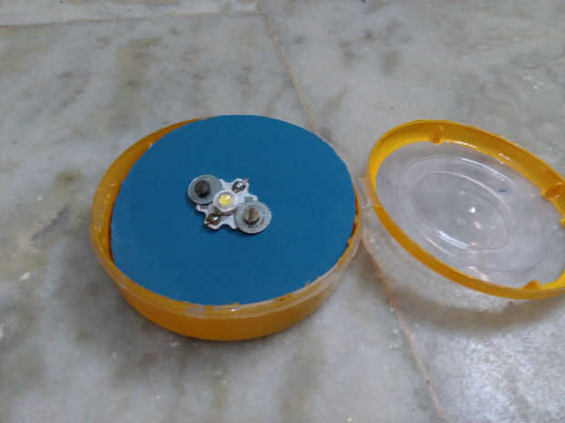 Ahora tomar hoja de PVC plana y cortar en el tamaño de la caja del brazalete lugar el 3Watts LED en él para más detalles consulte adjunto imagen a continuación.