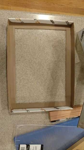 Utilice la regla o escuadra de carpintero para marcar de una pulgada (2,54 cm) en la tapa del borde. Utilice la cuchilla Xacto para cortar el interior. Terminarás con algo como esto.