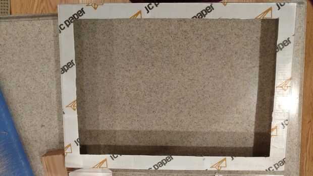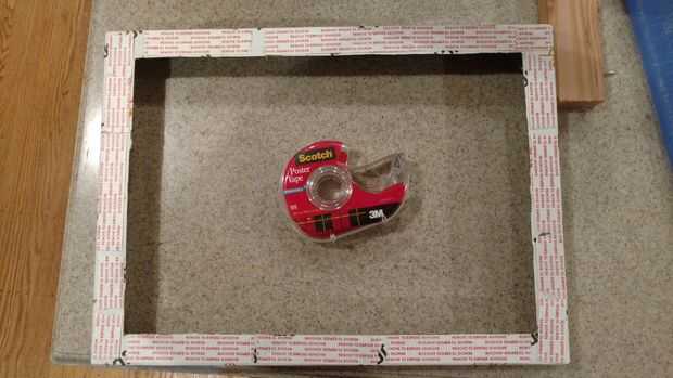 Colocar cinta de doble cara alrededor de la ventana en la parte superior de la tapa. No lo hace en el interior, hará cerrar el cuadro de forma segura más difícil. Retire el papel de la cinta y fije la lámina de plástico en la tapa. Terminarás con algo como esto.