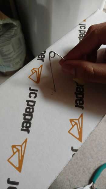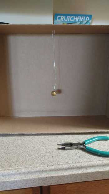 Utilice el pasador de seguridad para meter dos agujeros adyacentes en el centro del "top" de la caja (ver imagen de intro). Cadena de la campana en el alambre y retorcer el cable hasta que haya unos 5 cm en los extremos. Los extremos de la alimentación a través de los agujeros y girar juntos. Ciudad de la cinta para garantizar.