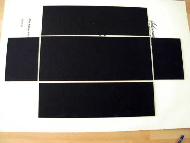 Coloque la cara de papel decorativo sobre la superficie de trabajo. Coloque las piezas de la caja como se muestra en la imagen. Asegúrese de dejar 1/16"- 1/8" entre las piezas y 1/2" entre las piezas y el borde del papel.