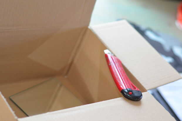 caja con apertura: caminata de zijkant aleta van de doos (de gooi del gesneden stukken karton weg