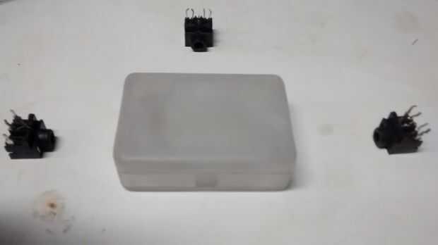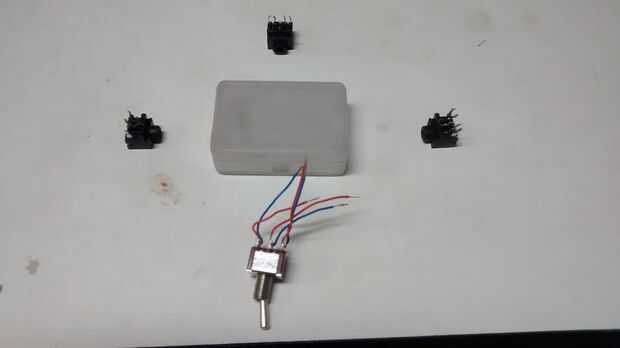 Prepare su caja haciendo los papeles para cada conector y el interruptor, figura 1. Pongo todos los componentes de llegar a la parte posterior de la caja, por lo que puedo pegar todos ellos.