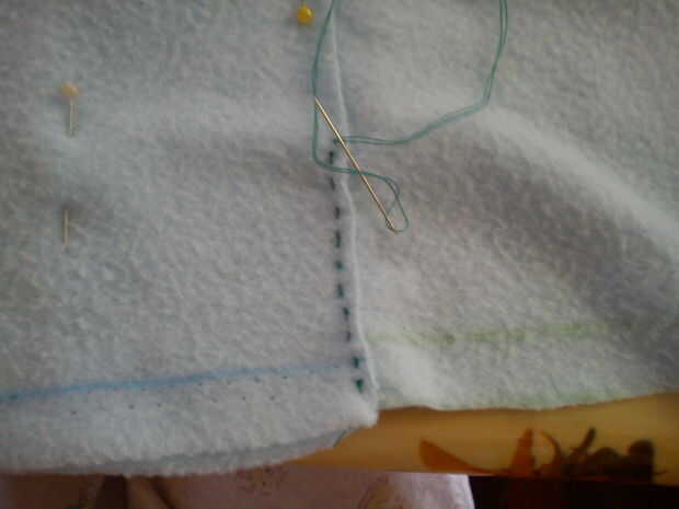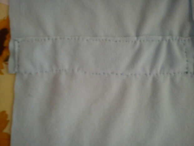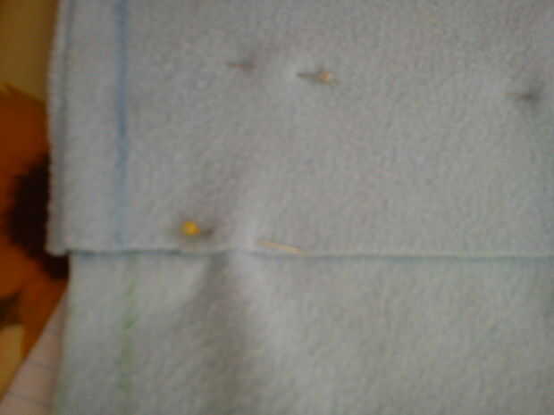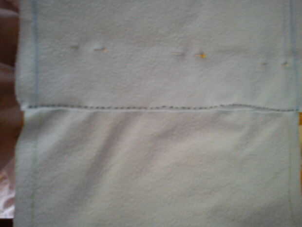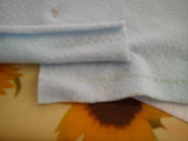 Así que lo que sucedió fue cubrió y cosidas las dos piezas de forro polar junto donde traslapó. La superposición fue intencional, y ha significado ser como protección adicional para la parte trasera de mi portátil, donde se encuentra la batería.