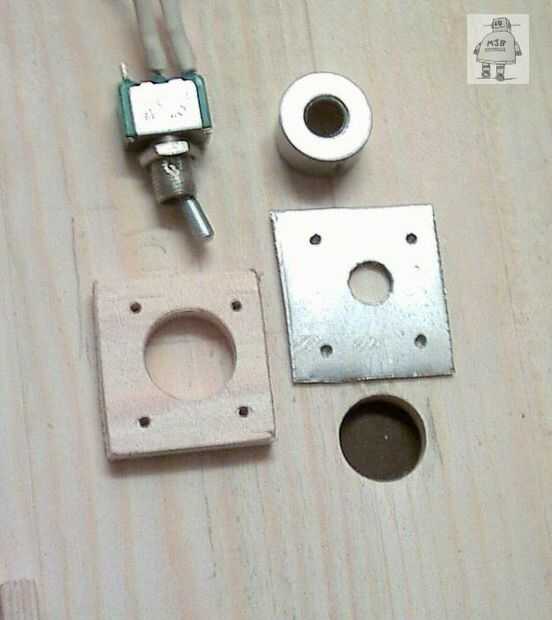 El interruptor se monta en una placa de aluminio pequeño, que luego se atornilla en el bloque de madera y el caso. Verifique que el interruptor no puede ser accidentalmente activa, de lo contrario, luces.
