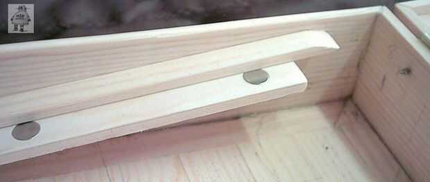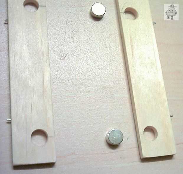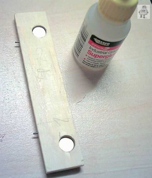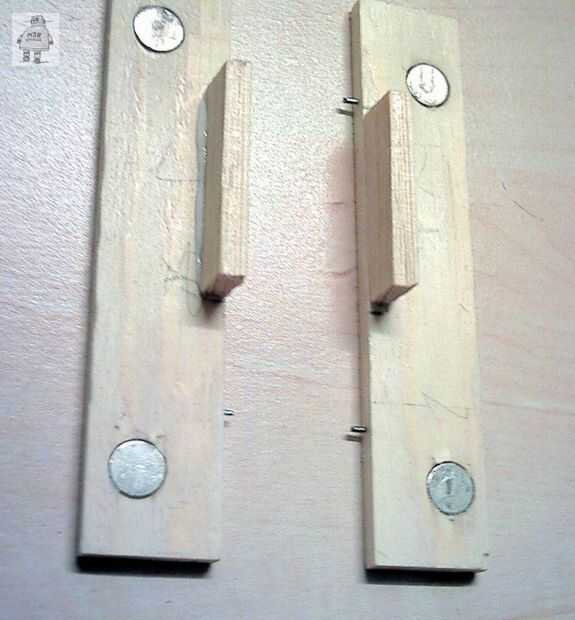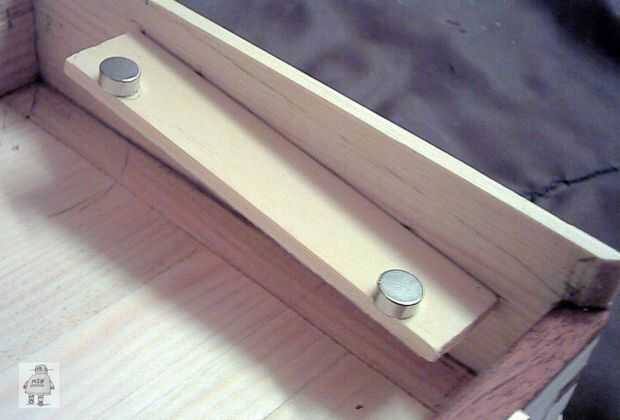 Los imanes de SuperMagnete fueron perforados pegados en las mejillas de madera, y luego un pequeño ángulo de estabilización/derecho pieza Añadida por debajo, para atornillarlo con.