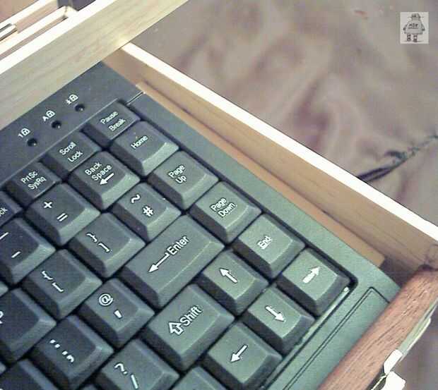 Las mejillas laterales se colocaron para evitar que el extremo posterior del teclado nivel con el caso, y el frente del teclado necesita introducir bajo y engancharla con la madera oscura "labio" en el caso. Añade un pequeño ángulo al teclado, como el teclado original es muy plano.