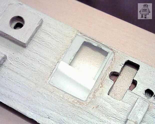 Para el módulo LIRC, una pieza de plástico IR-pass fue añadida dentro del vidrio y puntos en su lugar con pegamento PVA. Permite que la luz IR y salir, pero evita que la luz visible (para que no puede ver los PCB/piezas a través de la ventana). Esto es opcional.