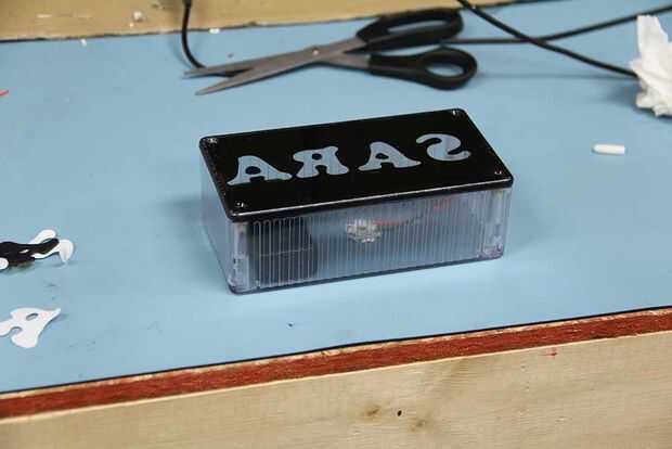 Por este tiempo en el proceso de las letras fueron quitadas después de que la pintura había fijado, pero antes de que estuviera completamente seco para que la eliminación fue más fácil. Fue atornillada la tapa hacia abajo y el interruptor a la posición. Trabajó primer intento:)!