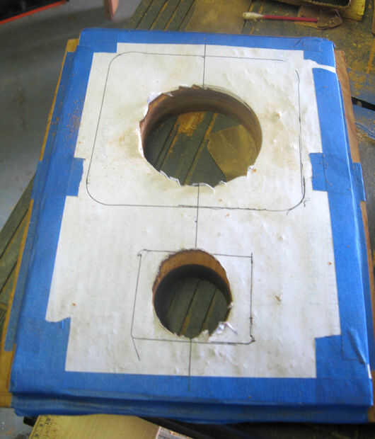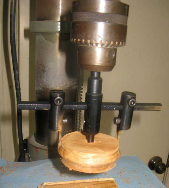 Por último usar la corte para cortar los agujeros del metro. Asegúrese de que tener un pedazo de paisaje de madera bajo el frente para evitar que la corte dañar la mesa del taladro.