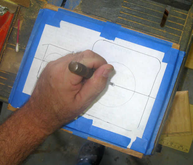 Use un punzón para abollar la madera en el centro de cada círculo. Esto evitará que la broca piloto que patina en el frente.