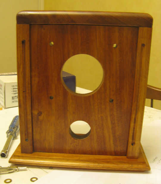 Pegué el frente sólo en la parte inferior. Los otros tres lados del frente pueden flotar en las ranuras de los lados y la parte superior. Esto permitirá que el panel frontal cambiar con el tiempo y no.