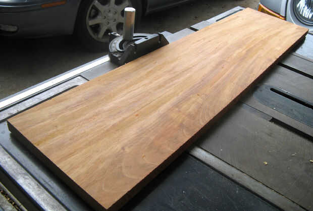 Mi caso fue construido usando una tabla de un pequeño molino de madera que se encarga de muebles de madera de calidad. Madera de este tipo de fuente es a menudo más grueso que el "estándar" y también viene en anchuras inusuales. Voy a enumerar las dimensiones que he usado, así como, cuáles serían las dimensiones de la madera comprada en una tienda como Home Depot.