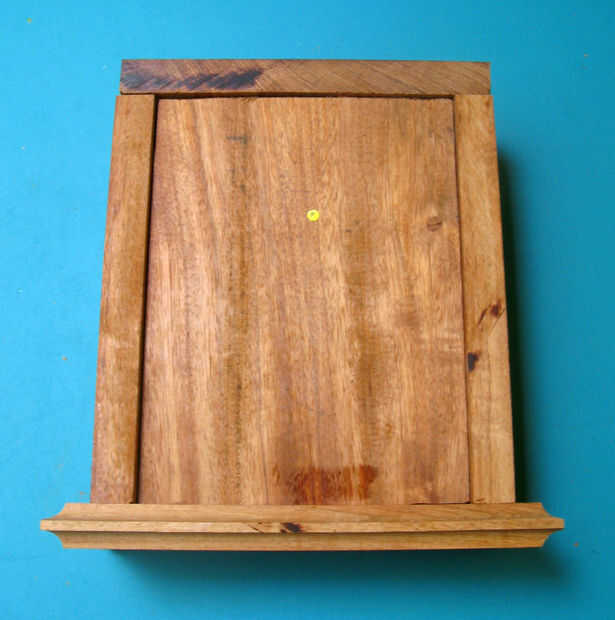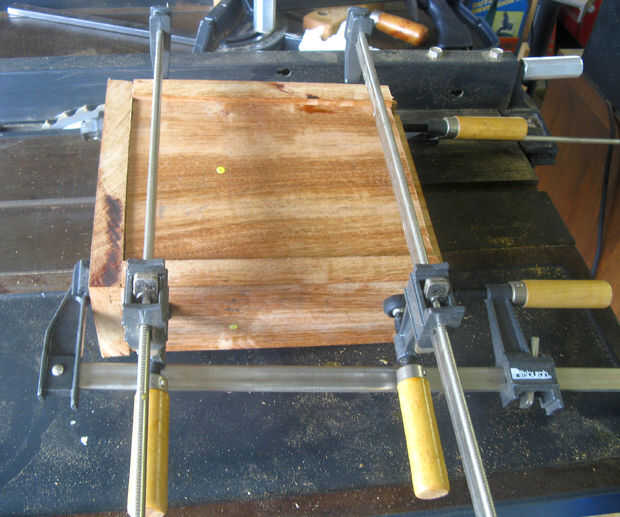 Te sugiero le pega la tapa y los lados juntos en este momento. El frente debe para evitar que un mal ajuste. Tenga cuidado de no pegar la parte frontal en el caso en este momento. Después de la seca del pegamento (8 horas), lije la cara de los lados y el borde del liso superior. No debe haber ninguna protuberancia en la articulación. Si usted tiene un punto bajo, rellenar con masilla capaz de arena que ha sido el color de la madera que utilizan. Asegúrese de que mantener la pieza frontal en su lugar. Existe el peligro de agrietamiento de la parte superior si se quita.
