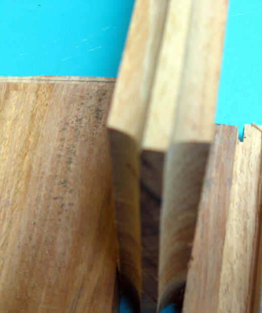 Uso de la Cala de 3/8 de pulgada de bits para una cala a lo largo de la frente y los lados de la base en los lados superior e inferior de la base de la derrota. Hacer no derrota la parte trasera de la base. Vea las fotos abajo para ver lo que debe. El punto del borde formado por la parte superior y parte inferior cove tratamiento debe ser 1/4 de pulgada.