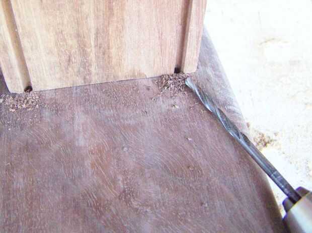 Usé un taladro con una broca para marcar la posición de la hendidura de 1/8 pulgada. Esto funciona bien si al final no se mueve en lo más mínimo en el proceso. Tal vez es más seguro marcar la posición de las ranuras con marcas de lápiz. Entonces cuidadosamente perforar un agujero de poca profundidad de 1/8 de pulgada