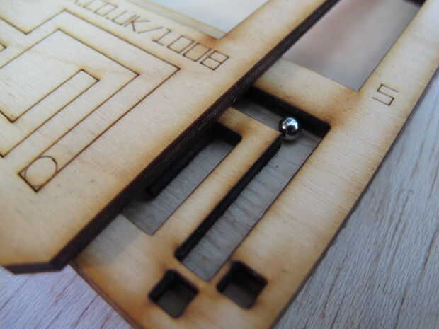 Si la bola no se mueve fácilmente, eliminar más material de la capa 4. Utilizo una dremel. Idealmente, tendrás que hacer esto porque habrá conseguido la derecha de configuración etch en el cortador del laser.