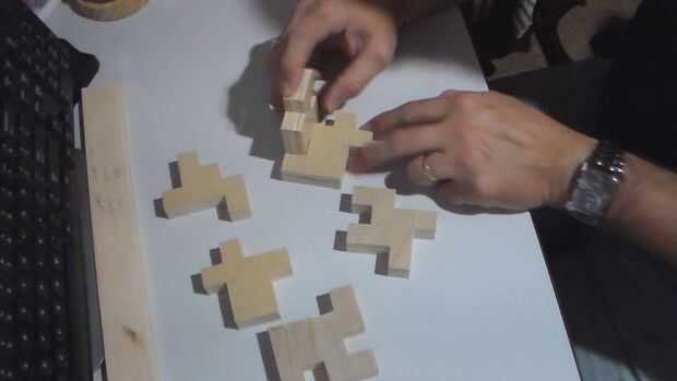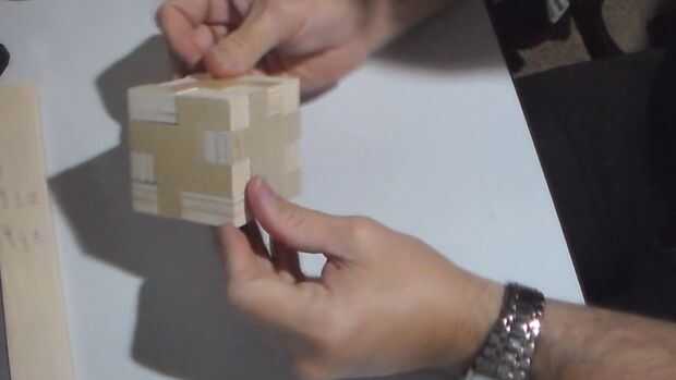 esto es una especie de cubo del rompecabezas. Hizo ver lo que podía hacer con el uso de cosas muy normales. Son todo tipo de formas que se ajustan en el cuadro como se muestra en la fotografía. Dio como un regalo para un intercambio de regalos.Paso 1