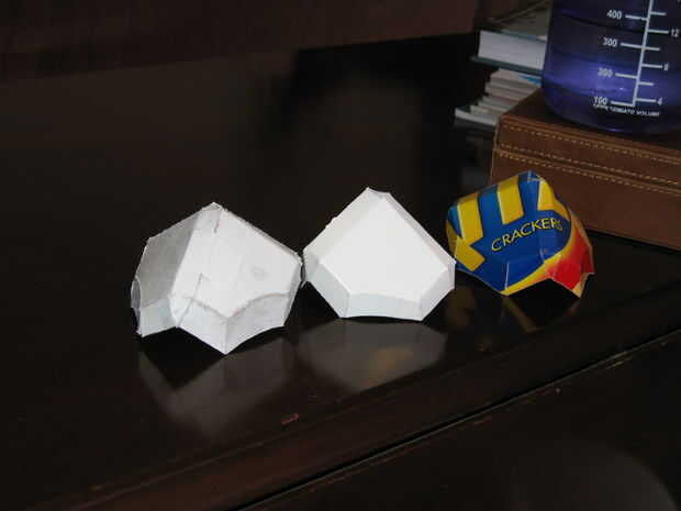 Después de recortar las esquinas exceso, adhiera los restantes puntos de contacto. También había doblado piezas de desecho de cartón y rellena en las esquinas abiertas ahora. Esto les dio más fuerza para que no colapse. Si usted tiene un montón de pegamento adicional, es posible para 'llenar' estos espacios con pegamento caliente, y que le daría una estructura de gran apoyo. Yo no hice esto, el cartón relleno funcionado muy bien.