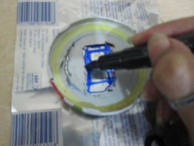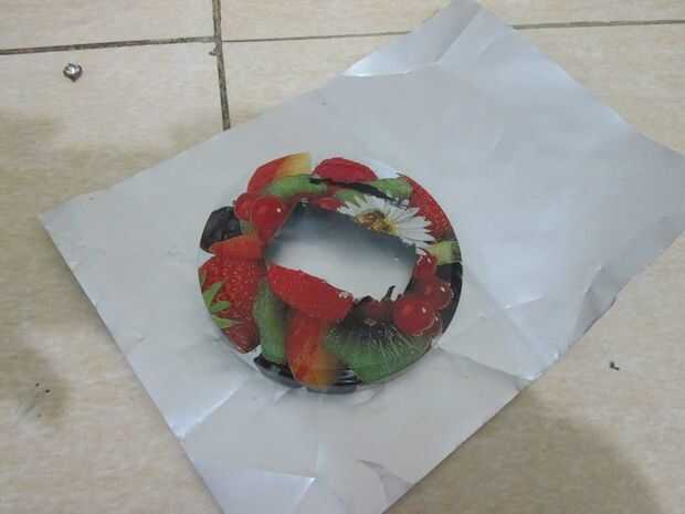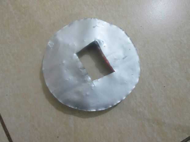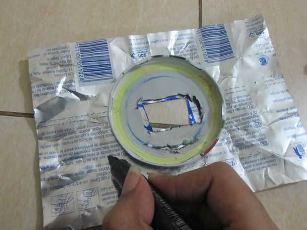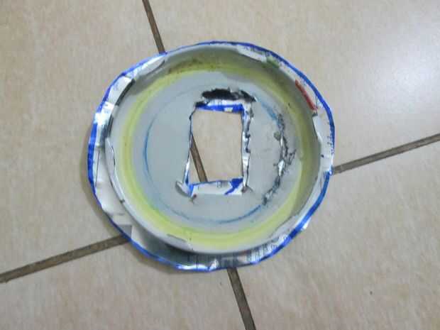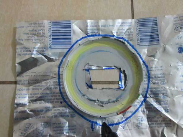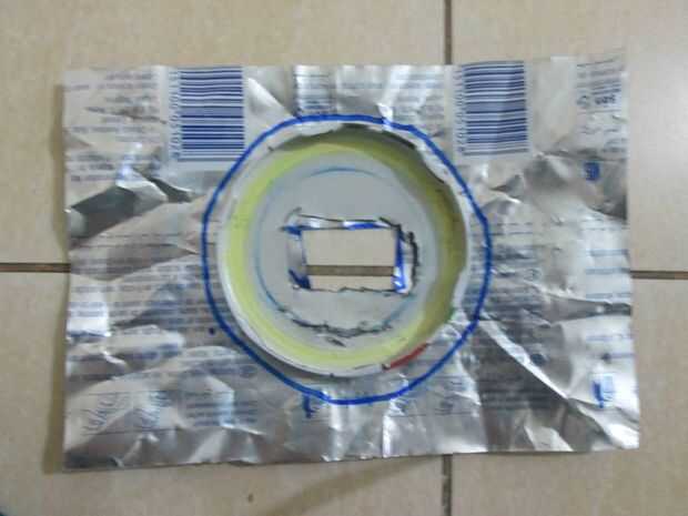 Ahora, tomar hoja de plata y cortar el centro de la misma como la tapa y coloque la tapa en hoja de plata