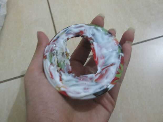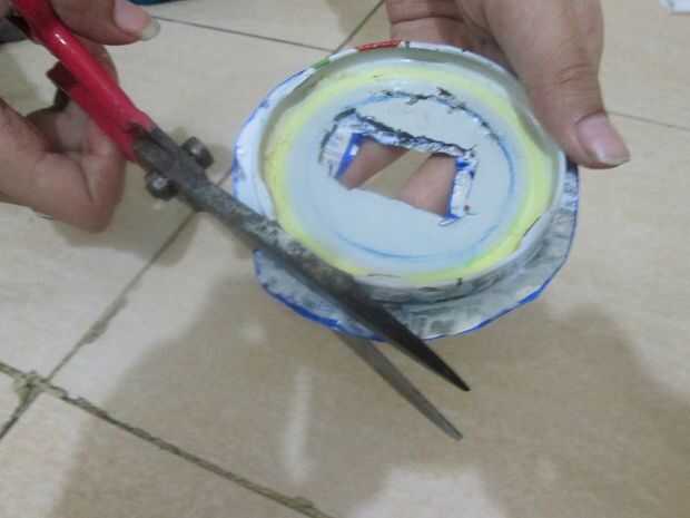 Ahora, hacer un círculo más grande entonces la tapa y cortar con tijera.