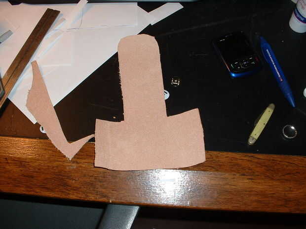 Coloque su patrón de papel sobre el cuero y remontar hacia fuera. Luego córtelo hacia fuera con un buen par resistente de tijeras o un cuchillo afilado. Prefiero tijeras porque siento que tengo mucho más control.