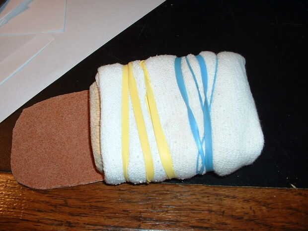 Ahora bien, envuélvalo en un calcetín y luego un montón de bandas de goma. Esto lo mantendrá firmemente sin dejar marcas en la piel.