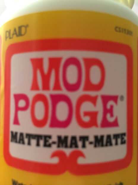 Freno hacia fuera su modpoge y pegar todas las imágenes hacia abajo sobre su caso. Sirve una capa superior de la cola una vez que todo se pega hacia abajo.