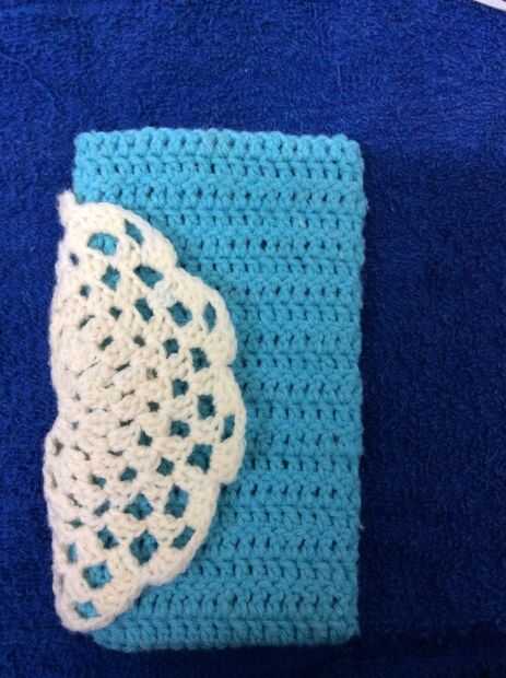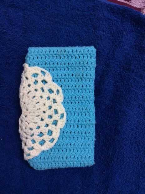 Ahora puede colocar el tapete de flores de ganchillo por teléfono del caso sin embargo te gusta. Sólo para darle un estilo vintage colocó en el borde como se ve en la foto. Ahora coser por debajo de la caja del teléfono.