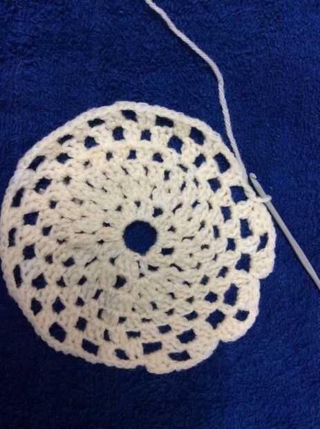 CH 2, 2 dc en el mismo espacio, * ch 2, saltar siguiente dc, 3 dc en próximo dc, ch 2, sc SC próximos, ch 2, 3 dc en próximo dc * 9 veces, ch 2, saltar siguiente dc, 3 dc en próximo dc, ch 2, sc SC próximos, ch 2, unir con un sl st en 2 ch de ruego ch-2.