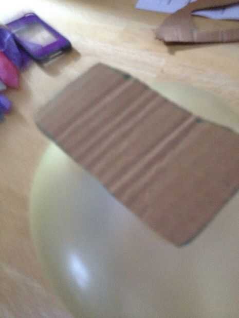 Se necesita:CartónCinta (claro)Corte de cajaTijerasCinta de mediciónPaso 1:Mida las dimensiones del teléfono.Paso 2:Cortar la caja de cartón para las dimensiones de la cinta y teléfono las piezas juntos.Paso 3:Utilice la cinta a la parte delantera de