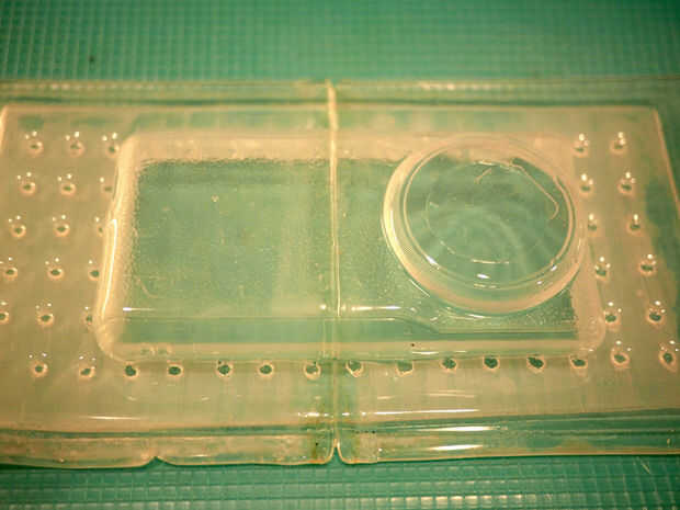 Después de separar el material de la estructura de metal y piedra modelo, es necesario recortar el caso burdamente con un par de tijeras y luego finalmente con una cuchilla de afeitar.