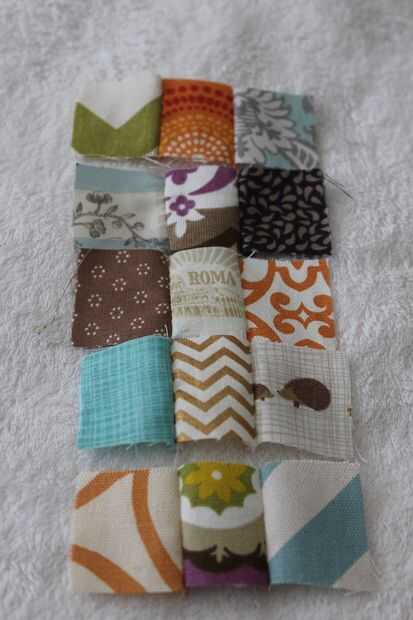 Una vez que hayas cosido tres plazas juntos, apartar la fila y coser el resto de una manera uniforme. Tratar de hacer las proporciones cuadradas medianas incluso con el resto de las plazas de mediados.