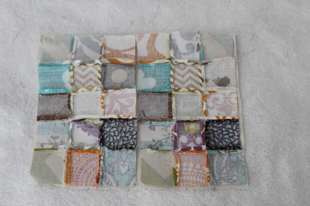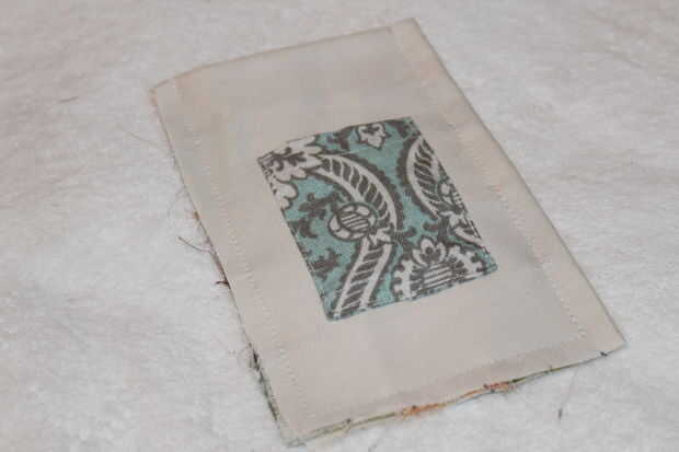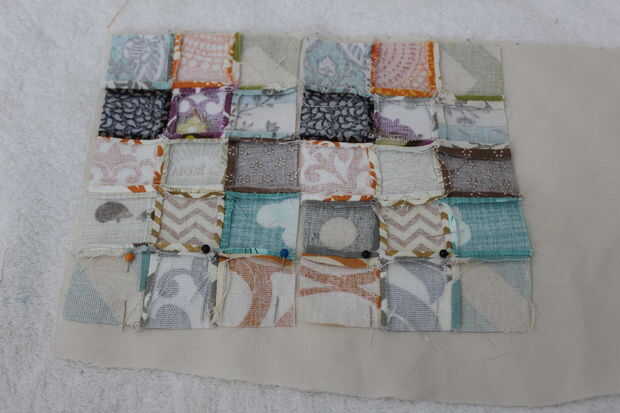 Coser el borde superior, colocar el mosaico a la tela interior.