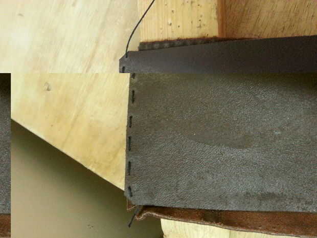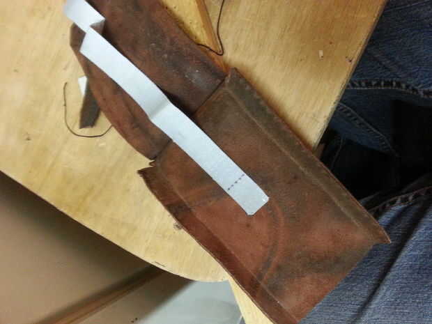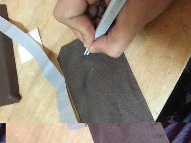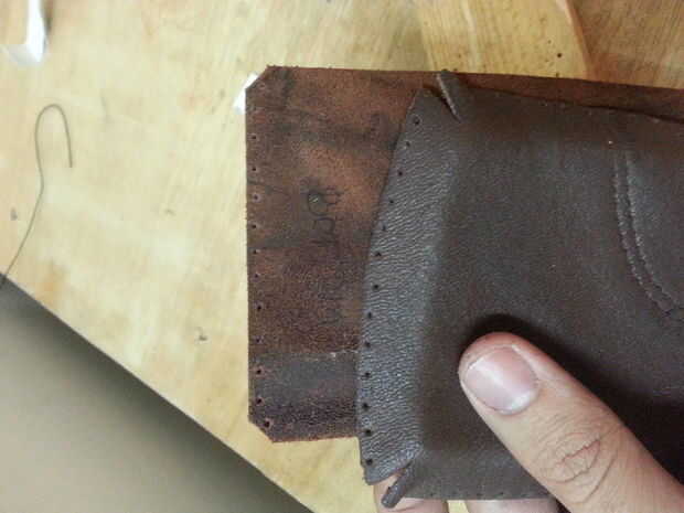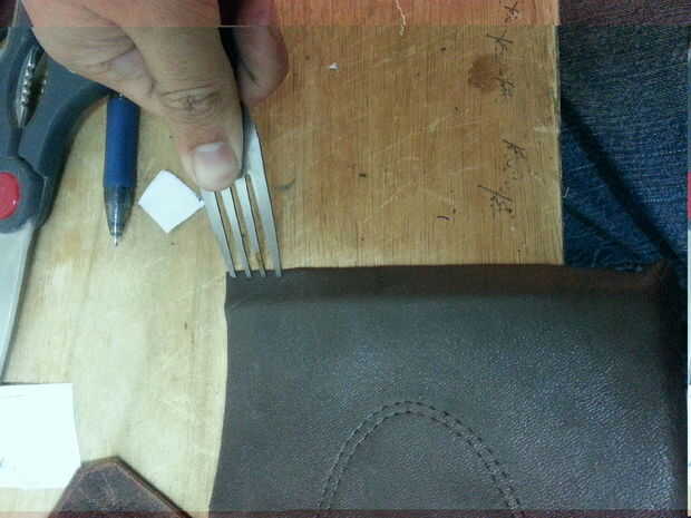 Después de perforar los agujeros empecé a coser la parte inferior de la caja. Usé algunos filamentos de nylon de una cuerda de nylon.