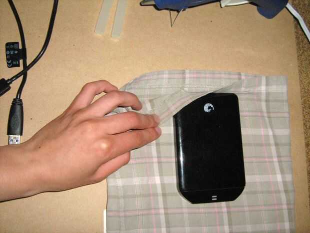 Asegúrese de dejar aproximadamente 1 pulgada alrededor del dispositivo de la tela sobrante por lo que hay un montón de espacio para trabajar con. También, si se puede, intentar dejar una costura en la derecha o la izquierda porque eso hará tu trabajo mucho más fácil cuando estás pegando.