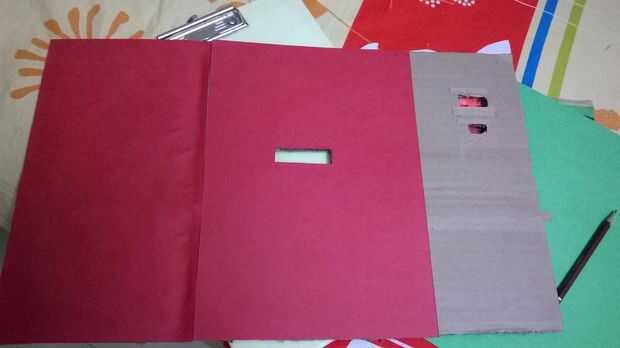 Como dije antes, la cartulina utilicé fue utilizada previamente para otro proyecto. pero si usas una cartulina normal, asegúrese de que cuenta con tres bisagras (pliegues) a distancias iguales.
