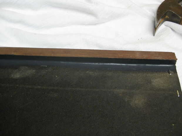 Utilice alquitranado y una pistola de grapas para sujetar papel interior lados y parte inferior de la tapa. Use masilla donde el papel se encuentra con el refuerzo.