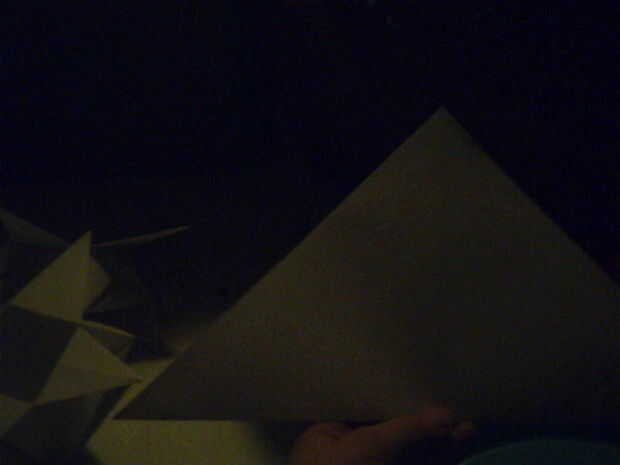 en primer lugar, el papel tiene que ser un dimond. doblar la parte inferior hasta la parte superior, desplegar, entonces la izquierda a derecha y desdoblar. Voltea el papel.