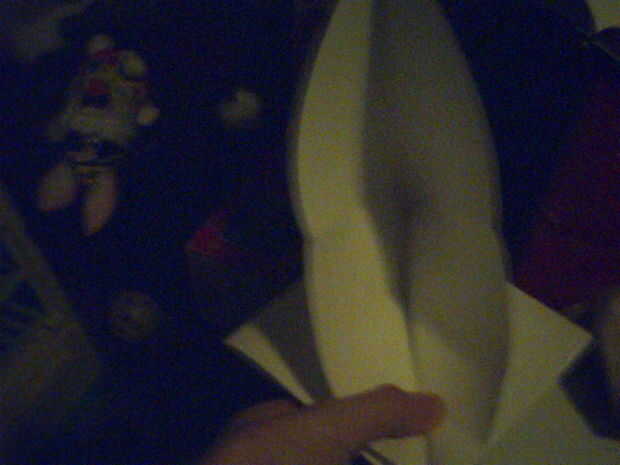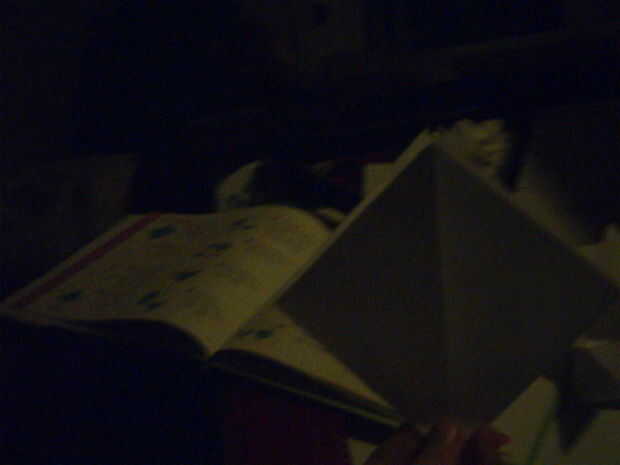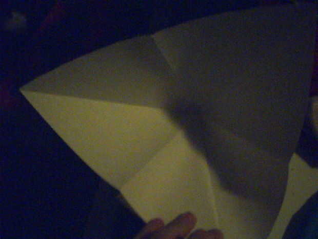 la forma es dimond (otra vez). doblar la parte inferior derecha a la parte superior izquierda, luego despliegue hasta que cumples un línea hacer lo mismo con el otro lado de la calabaza. lo siento, yo no podía ' t realmente lo explican bien. la parte que se puede abrir es la parte superior (última foto).