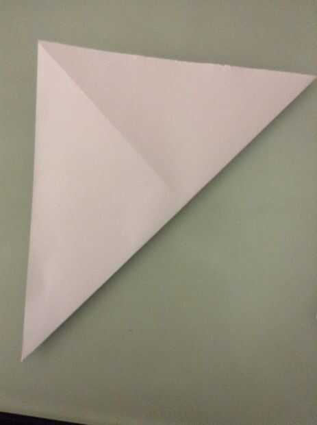 comenzar con una pieza cuadrada de papel de origami(lo que tú color preferido!!!!) Y luego doble el papel por la mitad dos veces y corte el papel en cuatro cuadrados.Paso 1: Iniciar 2 Con uno de los cuatro cuadrados, doblar por la mitad, doblando la