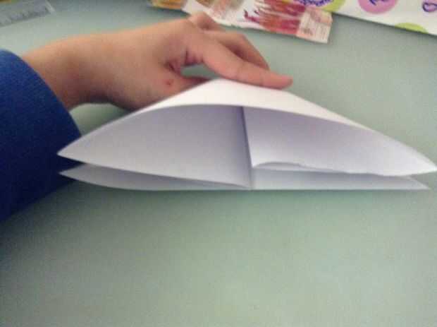Desdoblar el papel, hacer las dos líneas de cuando usted dobla en contacto medio y doble hacia abajo.