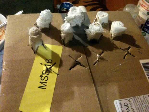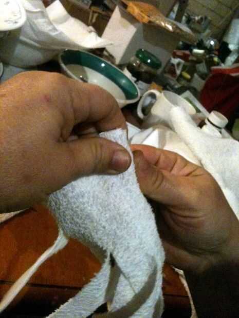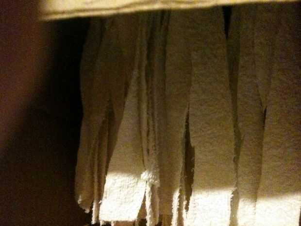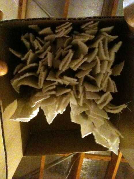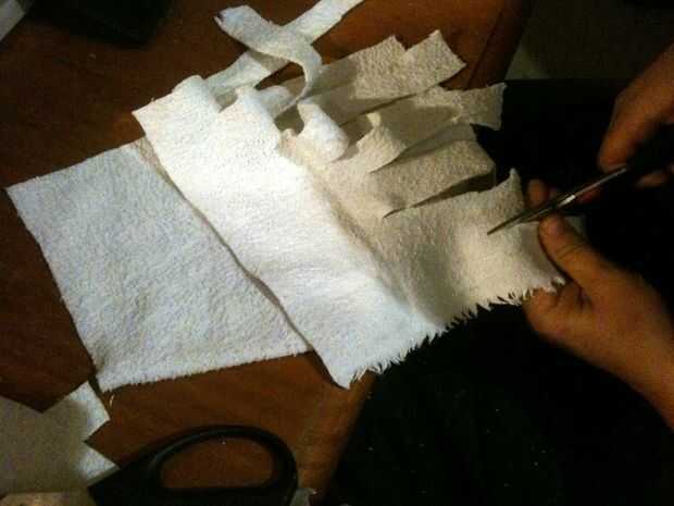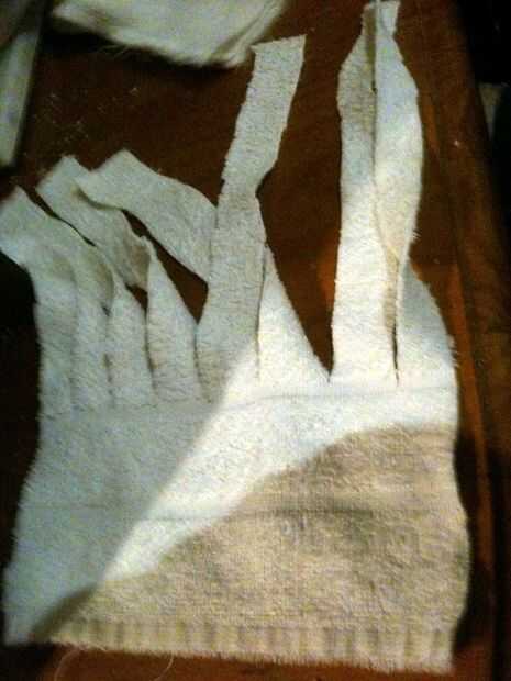 Ahora búscate una toalla vieja y cortar en tiras de unos 15 cm de ancho y la altura de su caja.