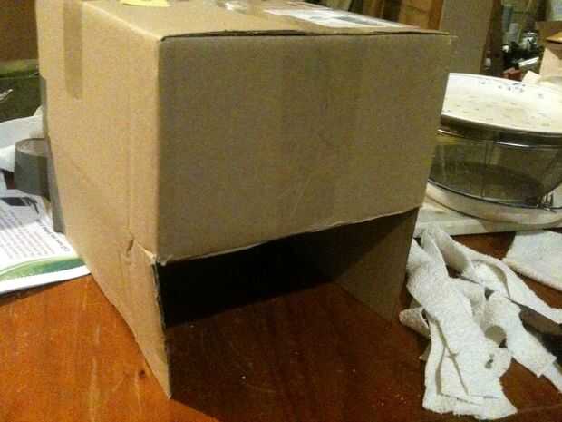 Empezar de con una caja que puede cubrir tus pollitos bebé cómodos con un poco de espacio. Nuestra caja es de unos 30 cm de altura. Este cuadro Asegúrese de crear una entrada que los polluelos pueden caminar cómodamente en y fuera de. En nuestro caso sólo el corte de una de las solapas de la tapa y pegadas las otras tres solapas a manera que tres de las cuatro paredes.