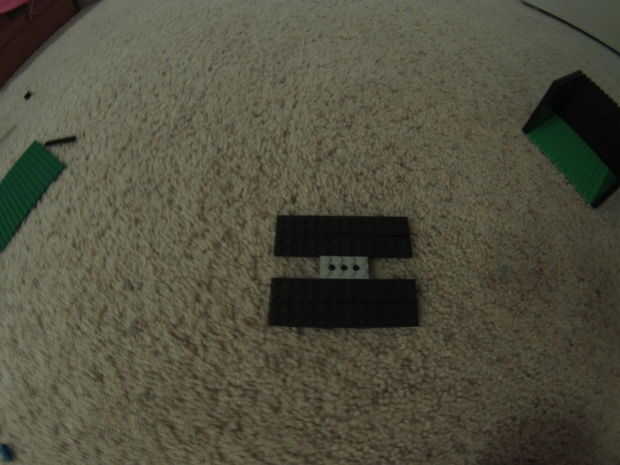 Para este paso necesitarás 4, 2 x 8 los finos. hacen dos filas de dos y agregue un 1 x 10 como se muestra en la imagen. Luego añadir un 2 x 4 con tres agujeros para permitir el mango en. Entonces puso negro 2 x 4 en ambos lados o hacerla ver completa, agregue 1 x 4 en la parte trasera para sostenerlo en lugar.