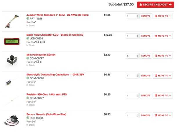 Todas las partes electrónicas se pueden encontrar en sparkfun.com .
